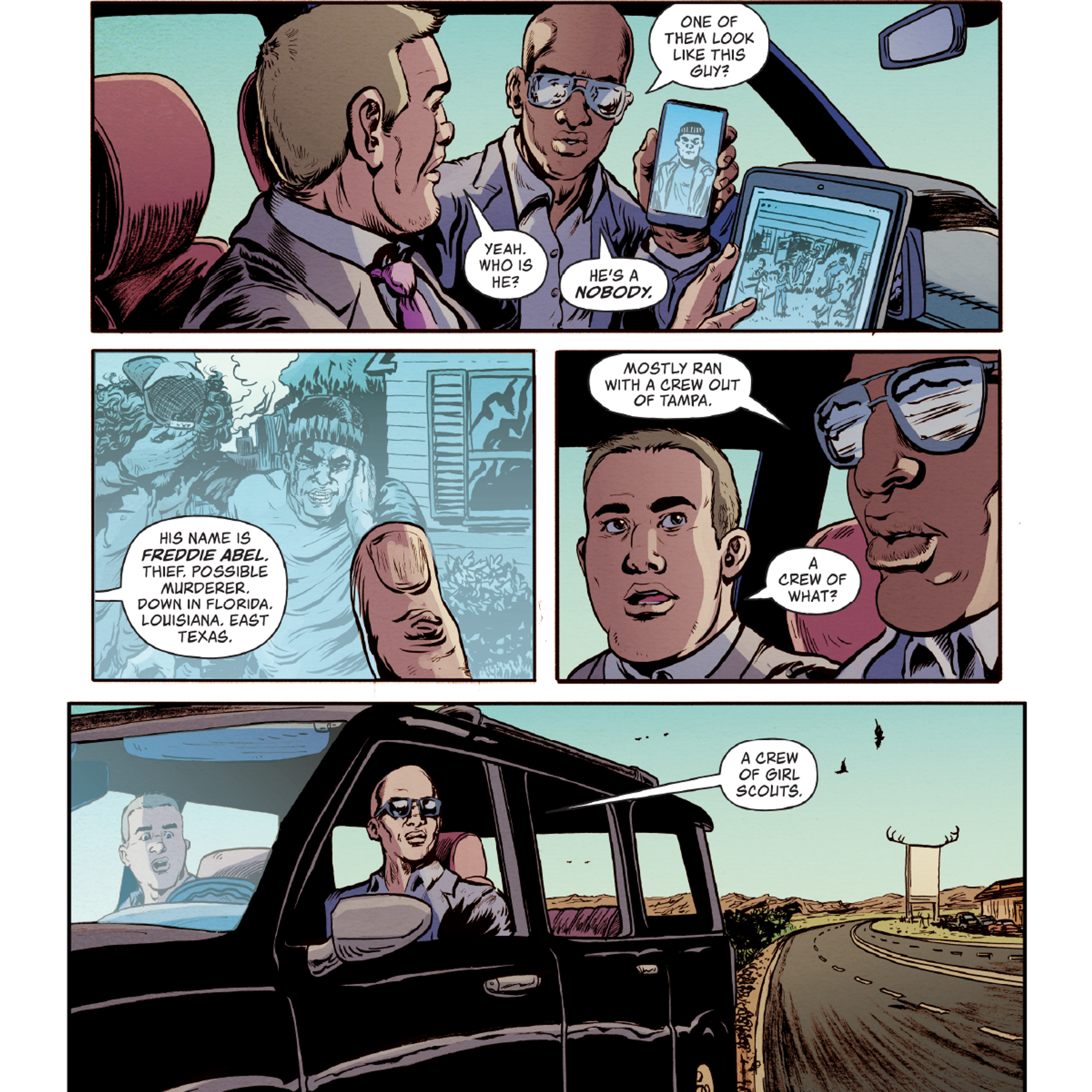 We are celebrating the series launch of AMERICAN CAPER with a series of weekly signings of Issue #1 every Saturday in November, kicking off in Los Angeles at the Revenge Of Comic Creators Block Party with Lazlow, Shelly Bond, Chris Anderson, Lee Loughridge, and Marguerite Sauvage—and wrapping up at the end of the month with a signing at the iconic Forbidden Planet London with Dan Houser. Alongside having copies of American Caper #1 signed, attendees at these events may bring one other item from the creators’ previous work to have signed as well.