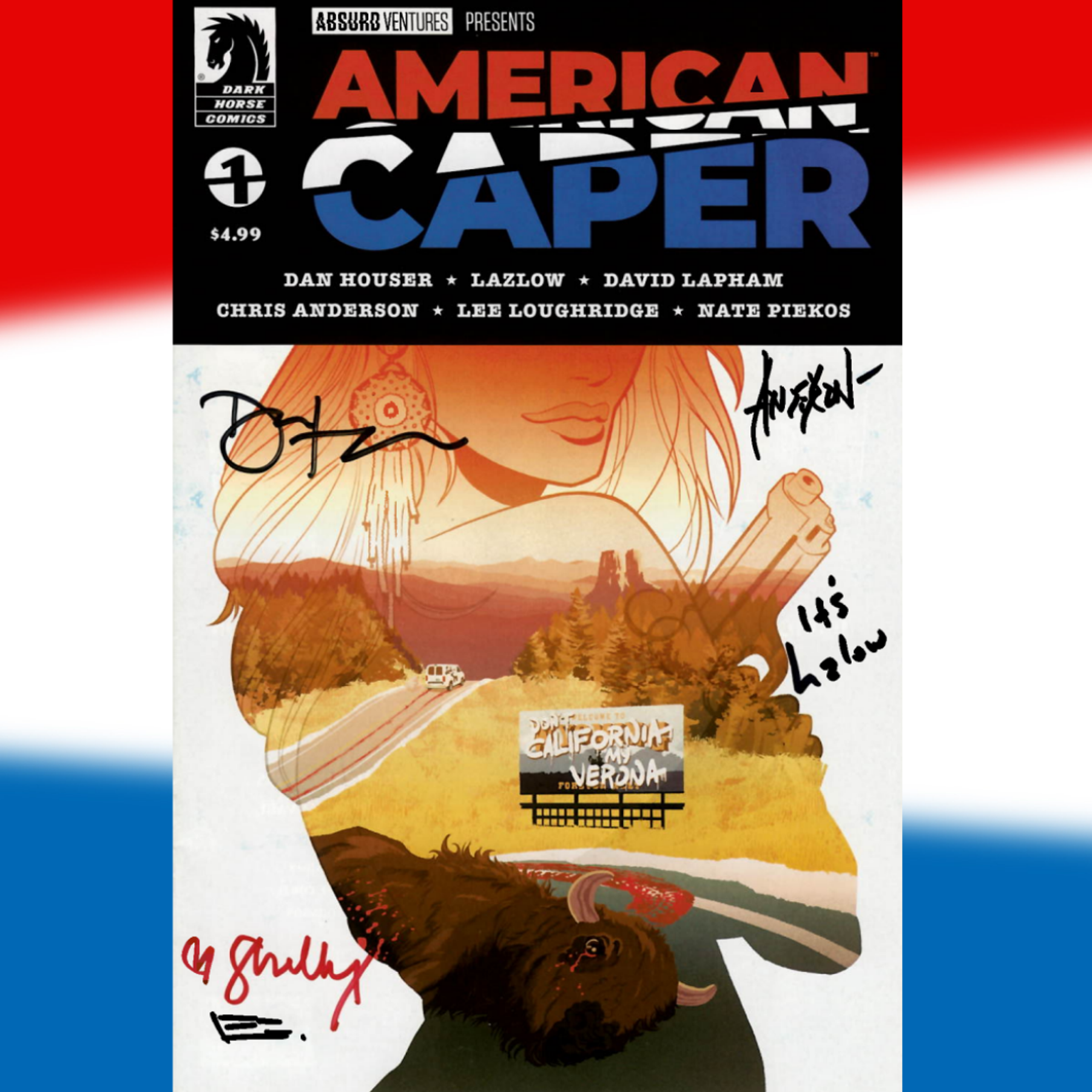 Enter for your chance to win a first print copy of the debut issue of the bestselling new crime-fiction series, American Caper, signed by series creator-writer Dan Houser, producer Lazlow, colorist Lee Loughridge, finisher Chris Anderson and editor Shelly Bond.